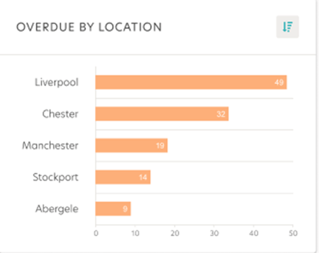 - Overdue by Location: This card shows the top 5 locations with the highest number of overdue actions within the specified date range