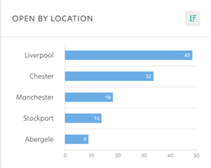 - Open by Location: This card shows the top 5 locations with the highest number of open actions within the selected date range.