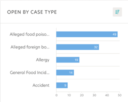 - Open by Case Type: This card shows the top 5 case types with the highest number of open actions within the selected date range.